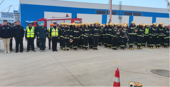當日,演練設定了“鋰電池廠房倉庫火災撲救”“電動汽車交通事故處置”和“撬裝式儲能電站火災處置”三個典型場景。隨著一聲震耳欲聾的爆炸聲響起,演練正式開始。災情發生后,單位安保人員迅速撥打119報警,并同時啟動單位應急預案展開自救。消防救援隊伍接到報警后,立即調集轄區新能源災害事故處置編隊開展滅火救援并啟動應急預案,由現場指揮部組織災情評估,制定滅火救援方案,統籌指揮應急處置工作。