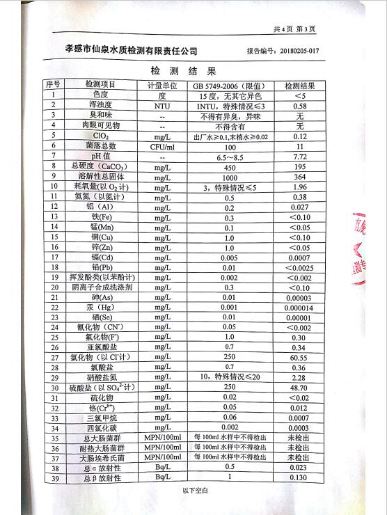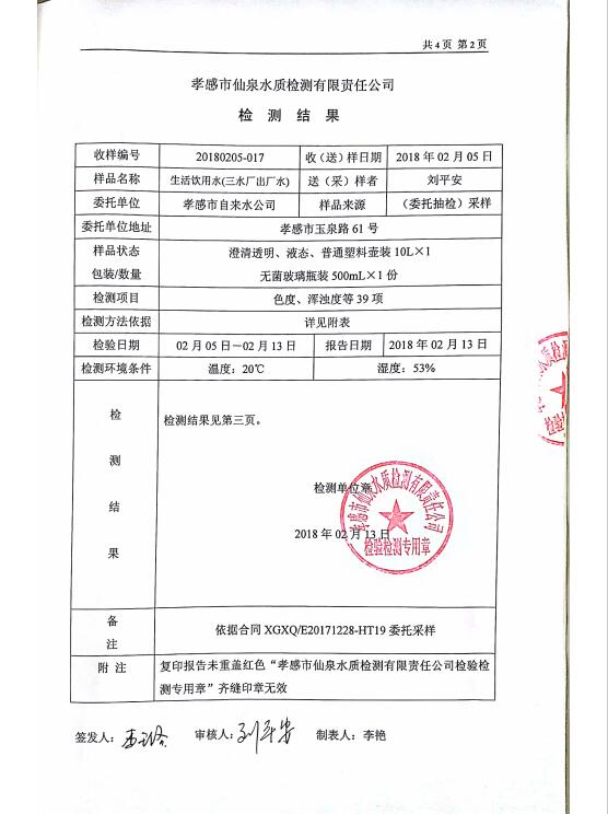 2018年2月水質(zhì)報告