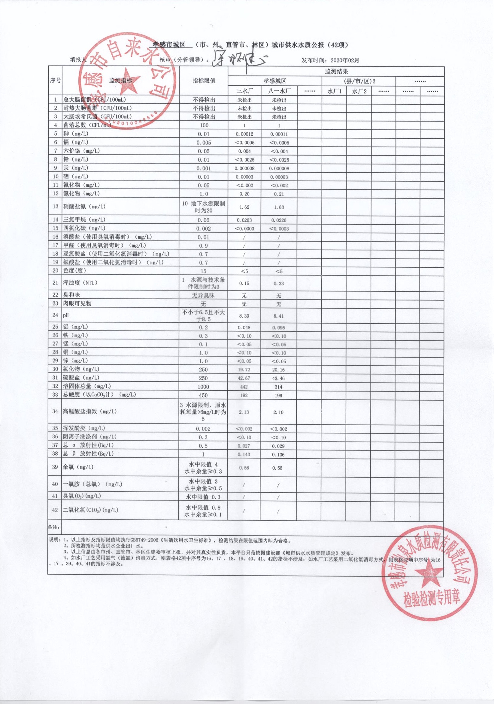 2020年2月水質(zhì)報(bào)告