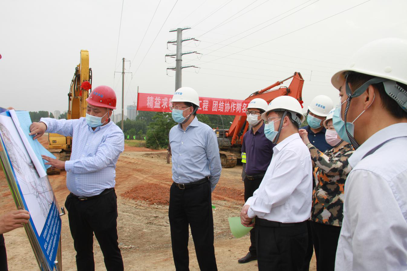 活動現場,葉華副市長一行實地查看了臥龍鄉濱河村沿河西路與老316國道復線連接處施工點,詳細了解項目開工、工程進度計劃安排作及防控措施等情況。他強調,要進一步優化施工方案,細化施工時間節點,上足人力和機械設備,加快項目施工進度,努力把疫情耽誤的時間搶回來。他要求,孝南區和各相關部門要迅速對接,積極做好協調和服務工作,力促工程項目早日完工。同時要嚴格落實疫情防控和安全生產主體責任,確保施工安全和工程質量。
