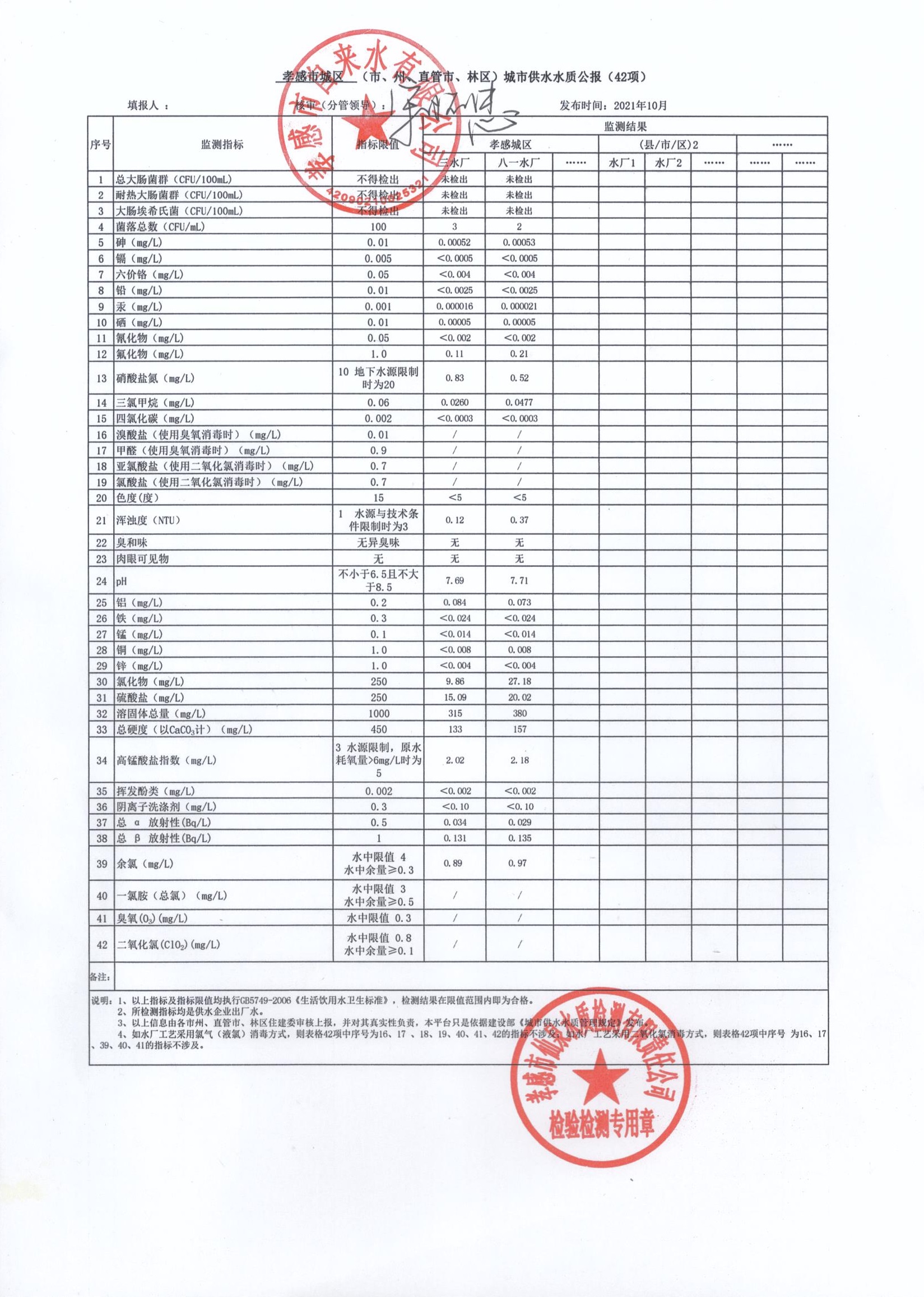 2021年10月水質報告